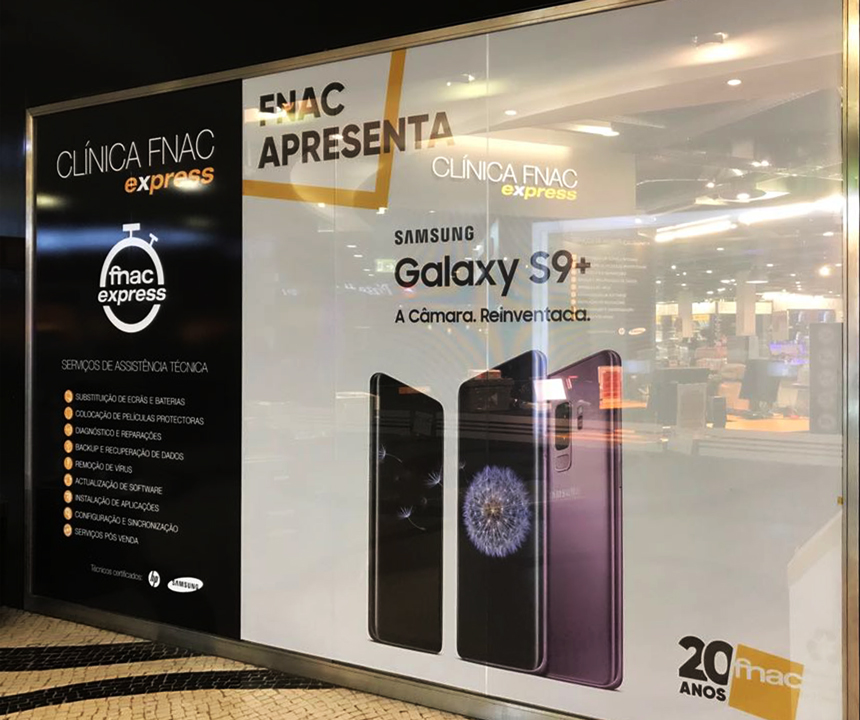 Produção em vinil opaco e micro perfurado pelo interior da montra