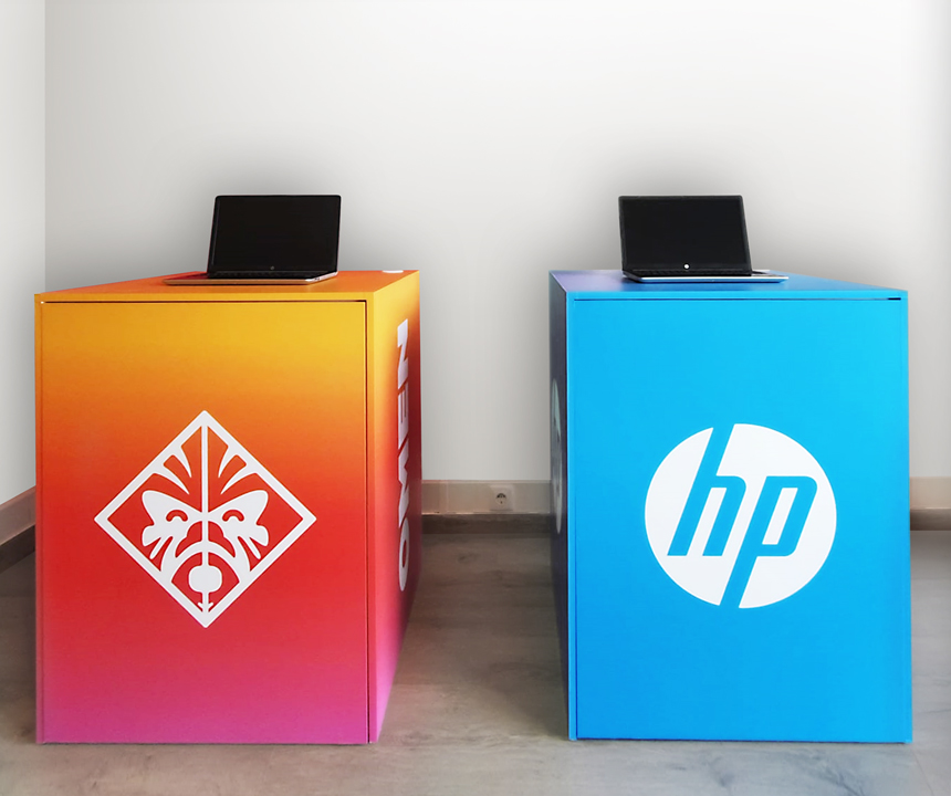 Produção digital médio formato de material publicitário em suporte rígido com cortante em fresa