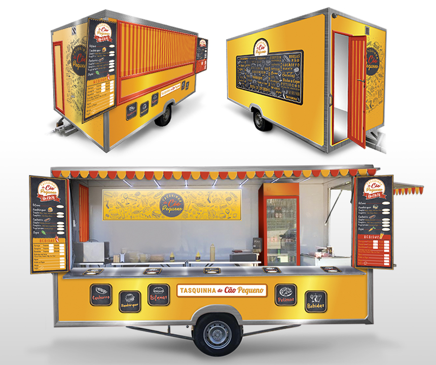 Montagem: decoração de veículo de Street Food e arca frigorífica