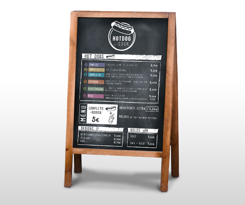 Produção: Vinil Cast Bubble free, menus em alucobond + PVC magnético impresso para alteração de preços